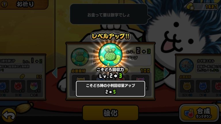 小判は、工場のパワーアップや、ねこの装備品を強化するのに必要なため出来る限り集めておきましょう。