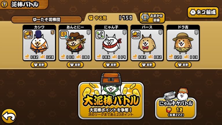 1匹あたりのネコは大体20以上のこそどろ力がありますので、1体増えるだけでかなりの小判回収ができます。