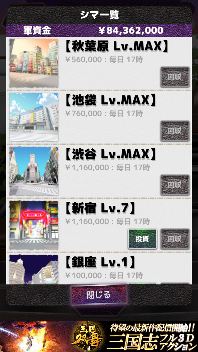 シマの拡大パートでは、お金が貯まったらすぐにシマを拡大しよう!